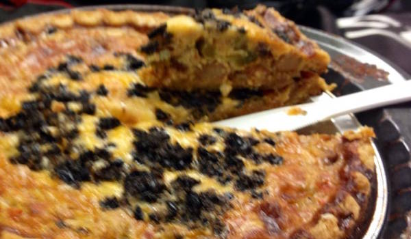 Preheat your oven to 375 degrees.  In a large mixing bowl, add the meat, peppers, onion and beans together and mix thoroughly.  Place evenly into your prepared pie crusts  making sure that the mixture is loose.  Prepare the usual base quiche mix, with only 1/4 cup of half and half, and add to it the liquid reserved from cooking the beans and the salsa.  Mix this thoroughly.  Pour this equally over the ingredients in the pie pans and top with the shredded cheese mixture.  If you’re going to include the olives, sprinkle them on top and pop the pies into the oven for 30 – 40 minutes, or until the cheese starts to get golden brown.  Remove and serve or pack it up for the rink.